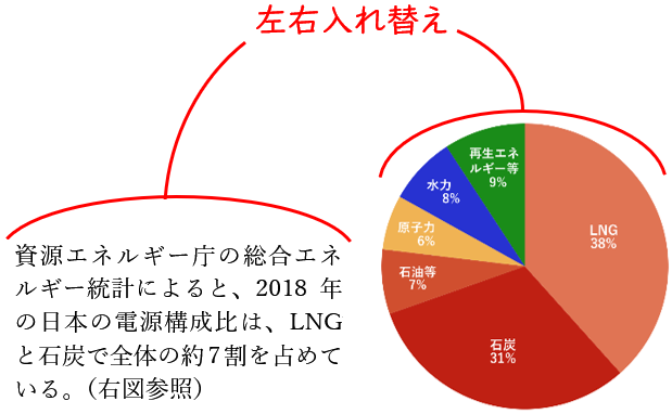 グラフとコピーを入れ替えたことによって「(右図参照)」が対応しなくなっています。「(左図参照)」にするのが適切です。誌面内のレイアウトが変わることで、どこかに矛盾が生じる間違いは非常に多いです。