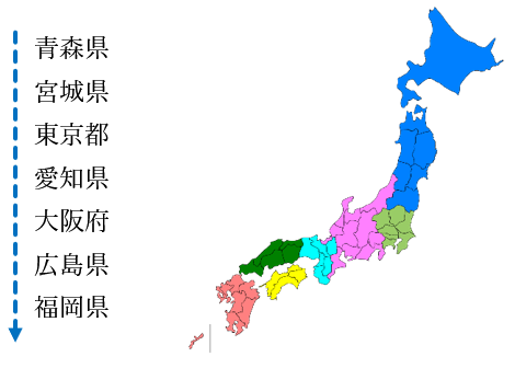 都道府県名が含まれる住所などは、日本地図の北から順に表示することがあります。企業の支店や事業所などを表示するときにはこのパターンが多いです。
