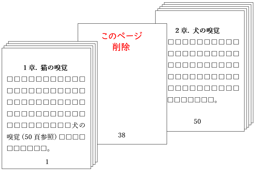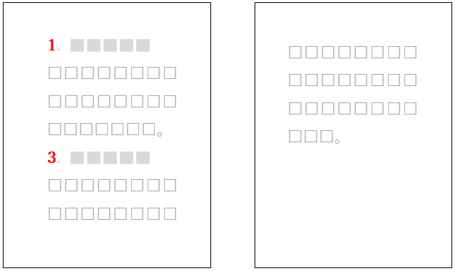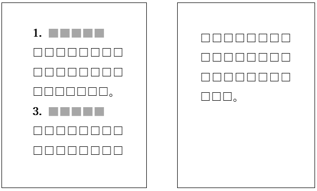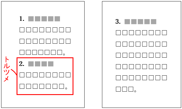 「2. ■■■■」を削除して、数字が通らなくなる例です。この例では「3. ■■■■■」が近くにあるのでわかりやすいですが、数ページ先にあると気づかないケースも多いです。