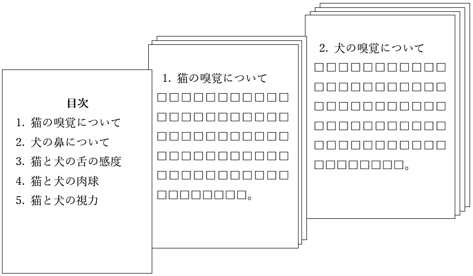 目次は多くの書籍や雑誌に載っています。基本的に目次は本文の情報を元に作成するので、本文の内容がある程度固まってから全体を通して確認します。注意すべきは、通しでの確認後に追加で修正があった場合です。