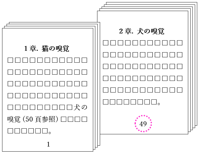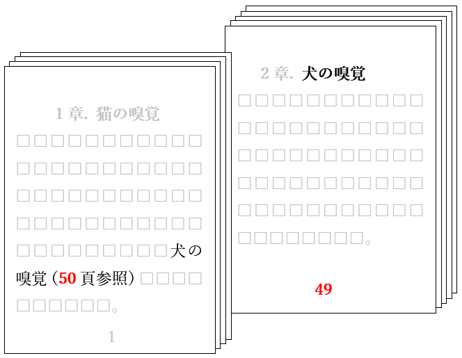 参照ノンブルも目次と同様に通しで確認するのが基本です。通しでの確認を終えた後に、追加修正でノンブルに影響する赤字が入ったときは要注意です。