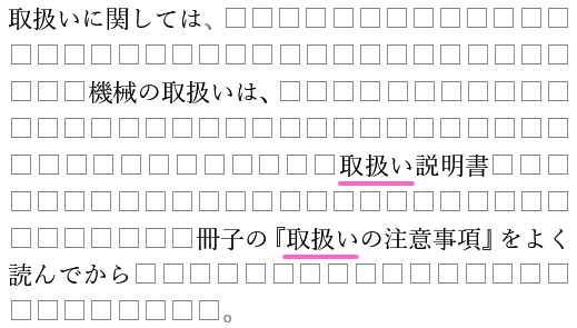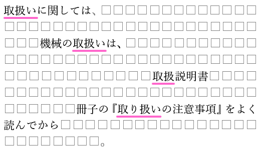 ここで多出の「取扱い」に表記を統一しようと赤字を入れた場合、どこがおかしくなるか考えてみてください。