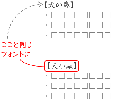 ※「ここ」の部分を「上」に変えて「上と同じフォントに」としてもわかりやすいです。