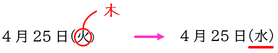 漢字やひらがな、数字、アルファベットなどの似た文字をあげればキリがありませんが、一例として曜日に関する良くない指示を紹介したいと思います。曜日はあらゆる媒体で見られるものです。