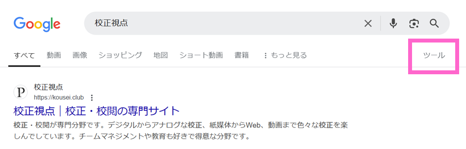 ※検索ワードの入力の順番は「校正紙 site:kousei.club」でも大丈夫です。以下で紹介する検索方法も語の順番は変えても問題ありません。