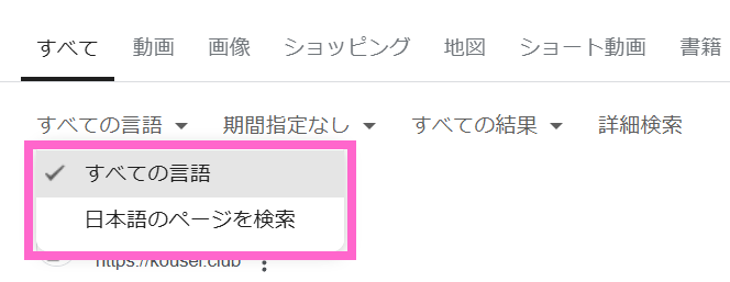 ここで言語設定ができます。「すべての言語」または「日本語のページを検索」を選べます。