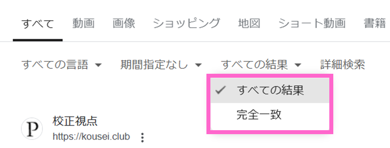 ここからは、「すべての結果」と「完全一致」を選べます。「完全一致」は、①で紹介したものと同じです。