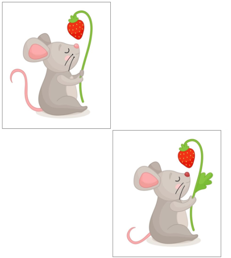 以下に「斜め」「上下」「左右」に配置されたイラストがあります。それらのうち、どの位置関係にあるものが一番間違いを見つけやすいか考えてみてください。