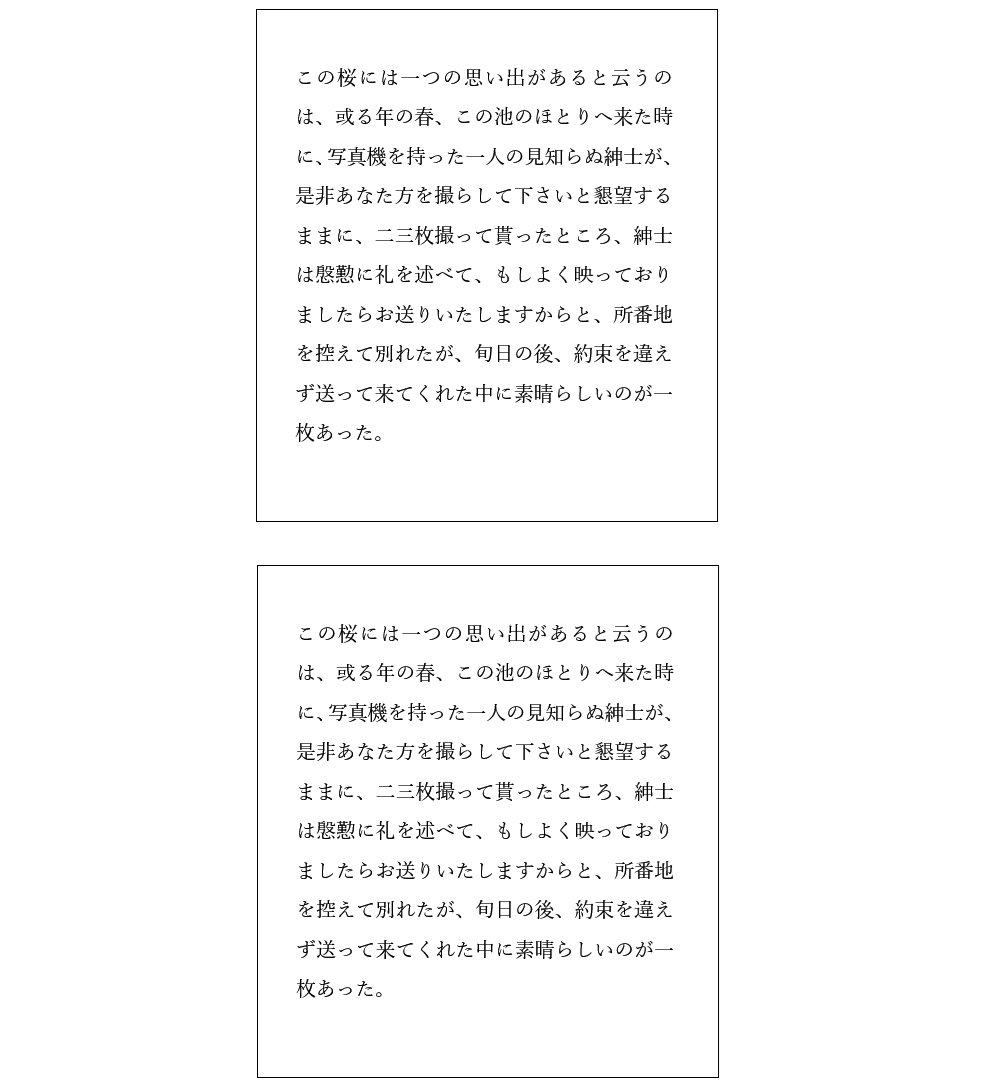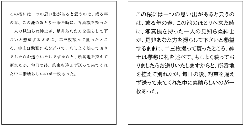 拡大縮小だけでは、一行あたりの文字数や改行位置の変更はできませんが、文字の大きさだけでも揃えておくと比較のしやさは違ってきます。理想は同じ大きさ・同じフォントですが、そこまでは難しいので、可能な限りで両方を近づけます。