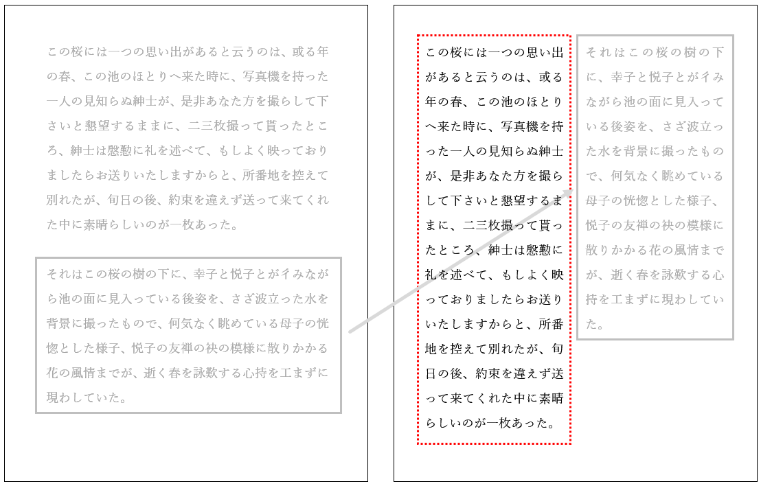 照合の際、このようにして不要な情報を隠す方法でやられている校正者は多いです。一度試してみると、比較のしやすさが実感できるので、ぜひ参考にしてみてください。