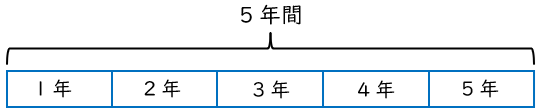 以上の「年間」や「満○年」、「○年にわたり」などは実際に過ごした年数そのものを表します。5年間で言えば、5年という月日そのものを表します。
