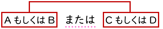 「AもしくはB」と「CもしくはD」をつなげたい場合には「または」を使います。