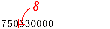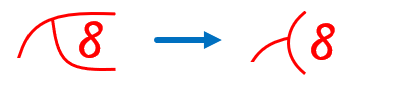 挿入指示では、入れたい文字(ここでは「8」)を二股線で挟むのが基本です。