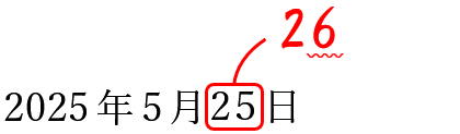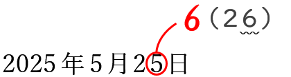 日付の数字も小さく表示されることがあります。「年」と違って、「月」や「日」の数字は変更されることが多いので赤入れの際は注意しましょう。