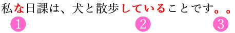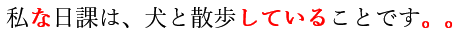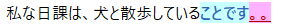 修正後の文章: 「私の日課は、犬と散歩することです。」