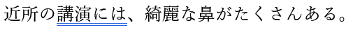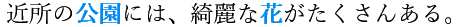修正後の文章: 「近所の公園には、綺麗な花がたくさんある。」