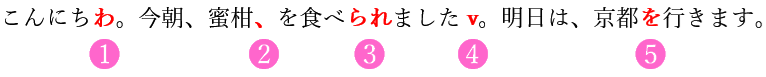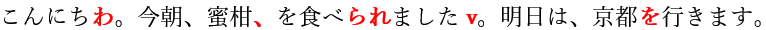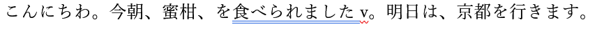 修正後の文章: 「こんにちは。今朝、蜜柑を食べました。明日は、京都に行きます。」