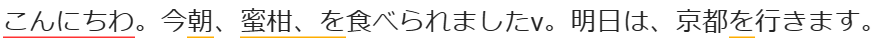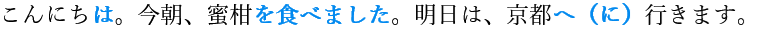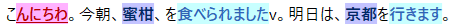 「こんにちは。今朝、蜜柑を食べました。明日は、京都に行きます。」