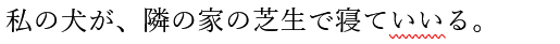 したがって、修正された文は次のようになります。「私の犬が、隣の家の芝生で寝ている。」