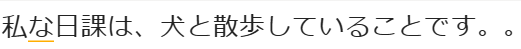 文章中に2つの誤りがあります。まず、「私な日課」は誤りで、「私の日課」が正しい表現です。また、文末の「。。」は不適切で、「。」が適切です。