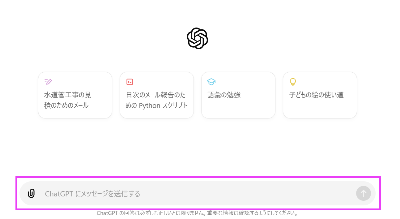 ※質問の文章は他の表現でも大丈夫ですが、「以下の文章を校正してください。」だと誤りを修正した文章のみが返ってくる場合があります。今回は個別に誤りを指摘してもらいたいので、このような表現にしています。