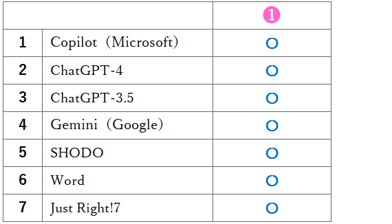 ただこれらのツールは、校正専用のツールではないので、比較対象のために「SHODO(ショド―)」(AI校正ツール_無料版)、「Wordの文章校正機能」も加えています。さらに、「Just RIGHT!7 Pro(有料版)」も加えて検証しています。